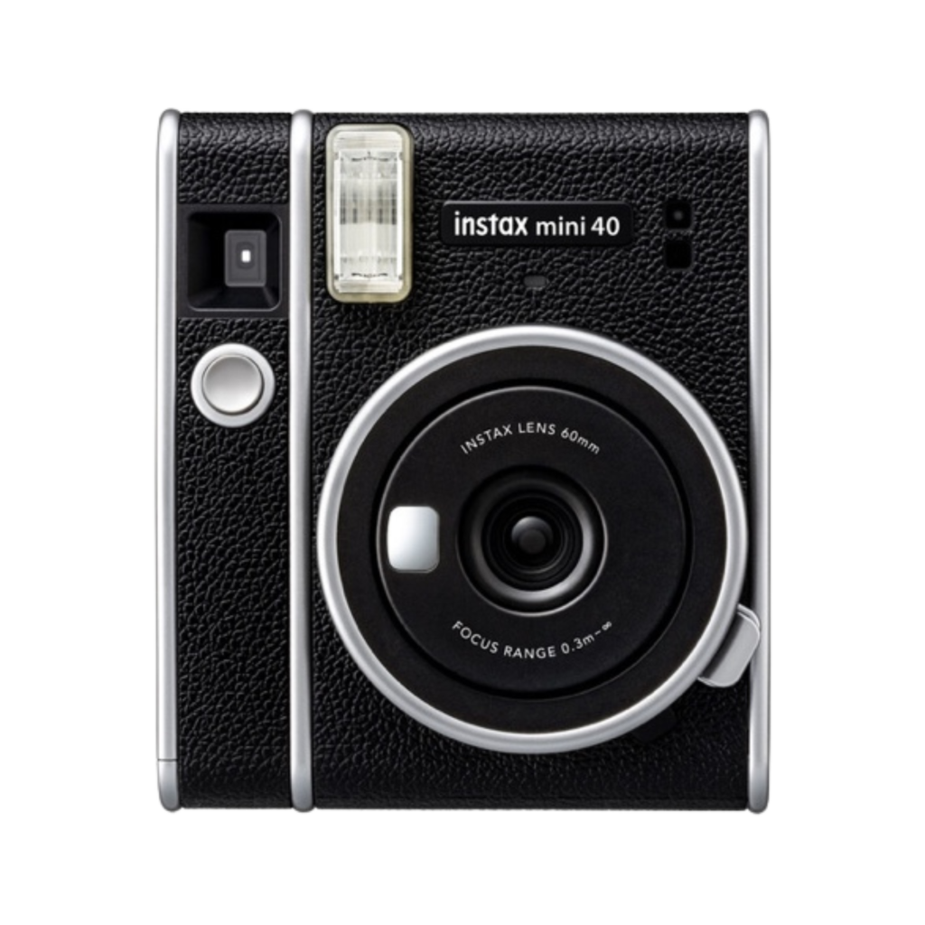 A stylish and classic instant camera featuring automatic light detection for perfect brightness, a dedicated selfie mode for clear close-up shots, and the ability to print credit card-sized photos (46 × 62 mm) using Instax Mini film
